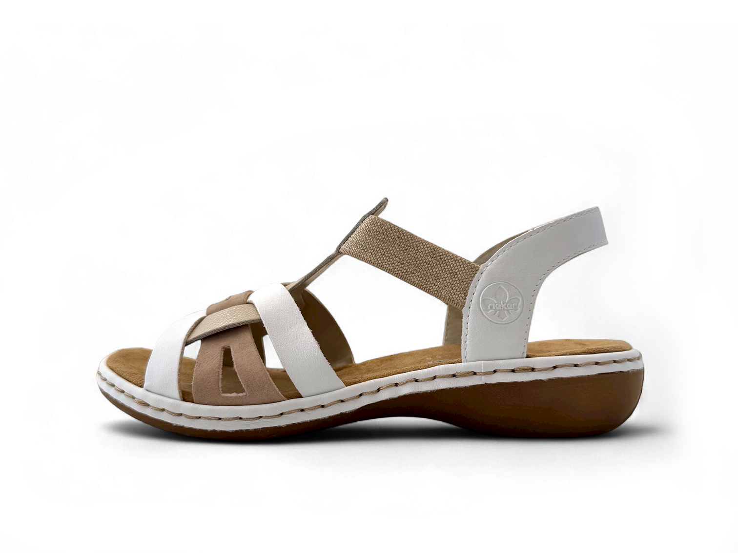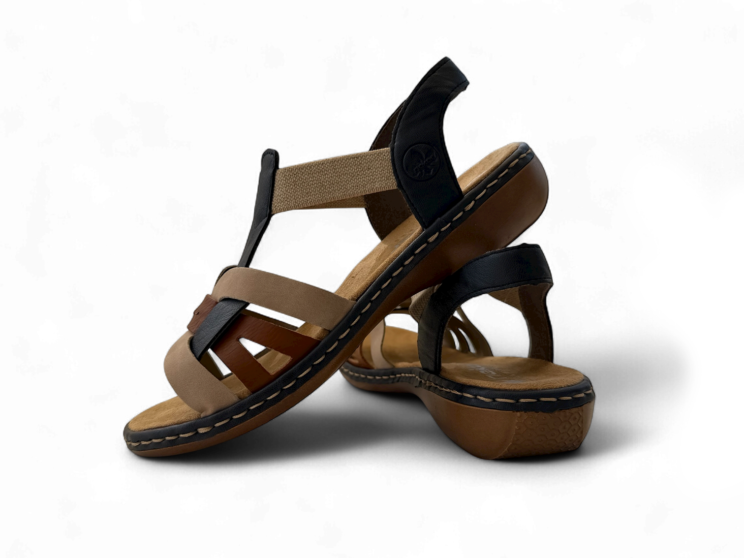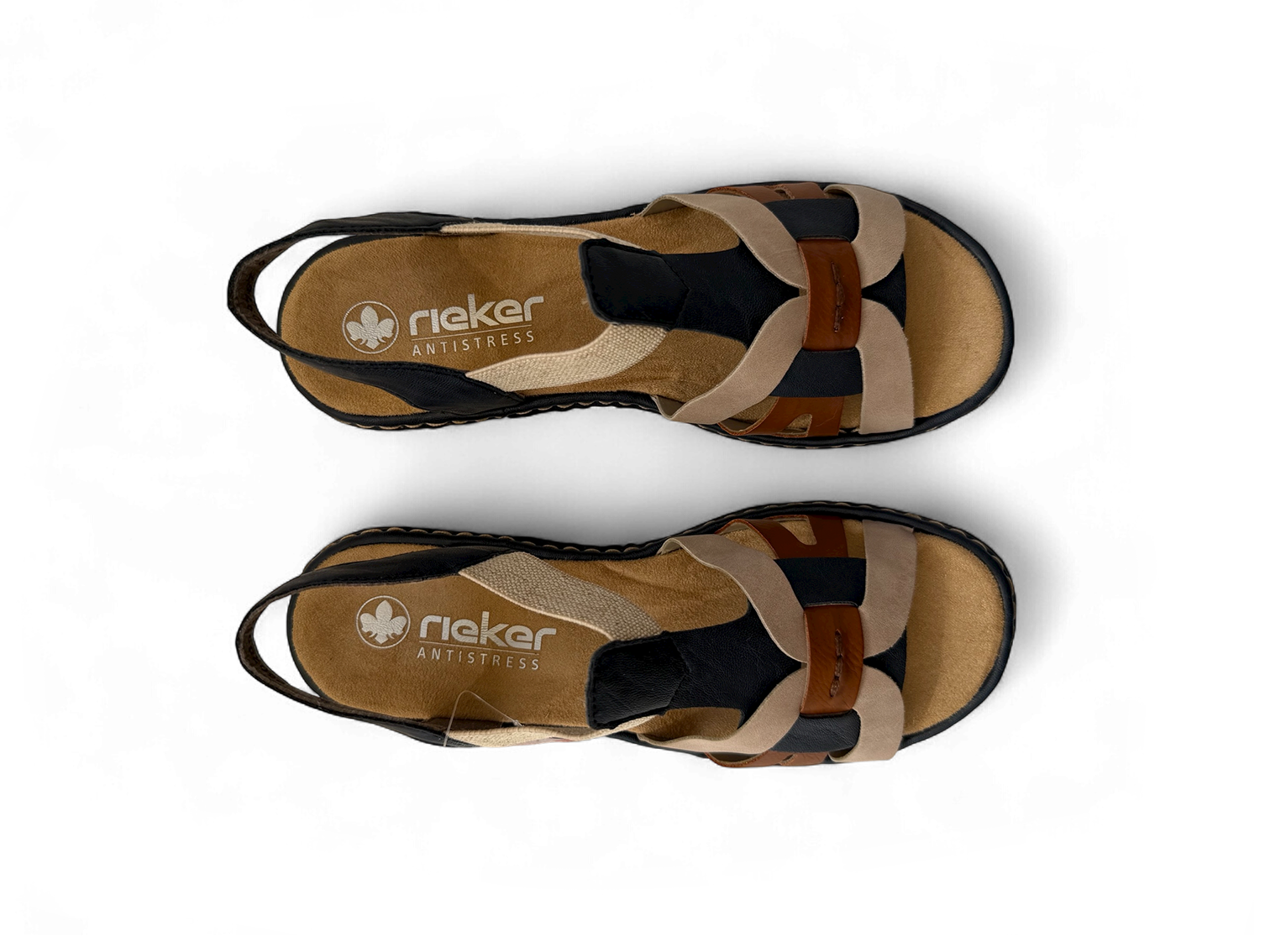 The Rieker Hampshire is a women's sandal model known for its combination of style and comfort, featuring a lightweight construction, cushioned footbed, and flexible sole for easy wear and all-day support. Key characteristics include its slip-on design with elasticated straps or stretchy detailing, a practical heel height of approximately 33mm, and the use of Rieker's Antistress technology for added flexibility, lightness, and shock absorption.