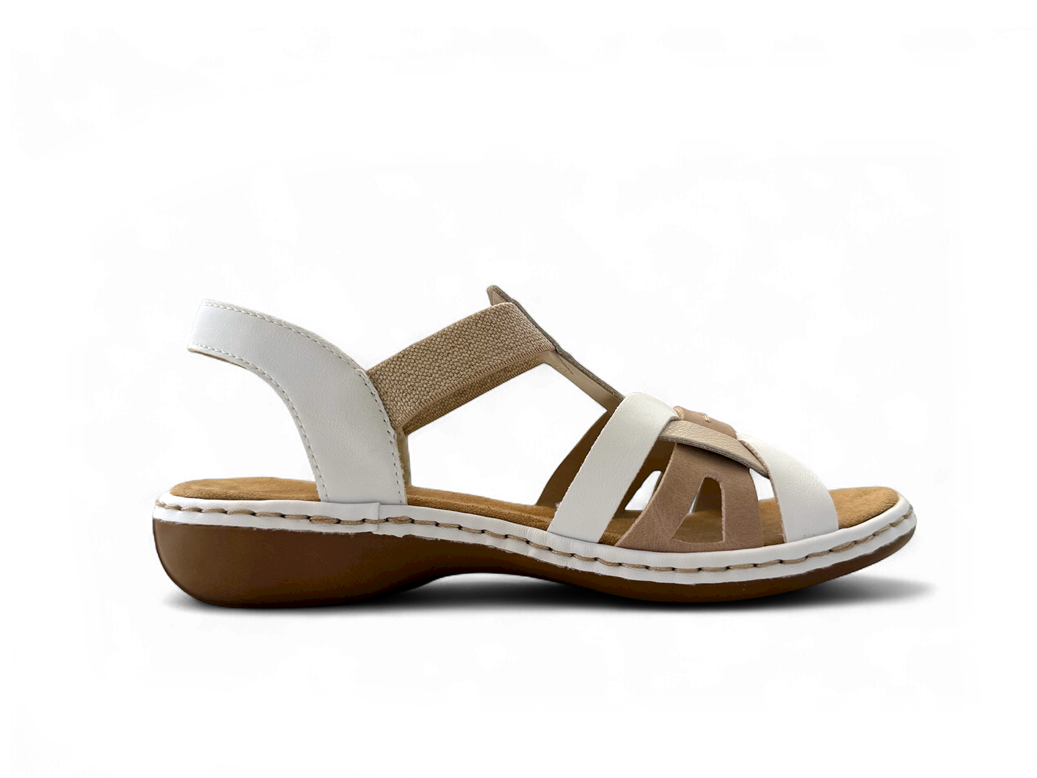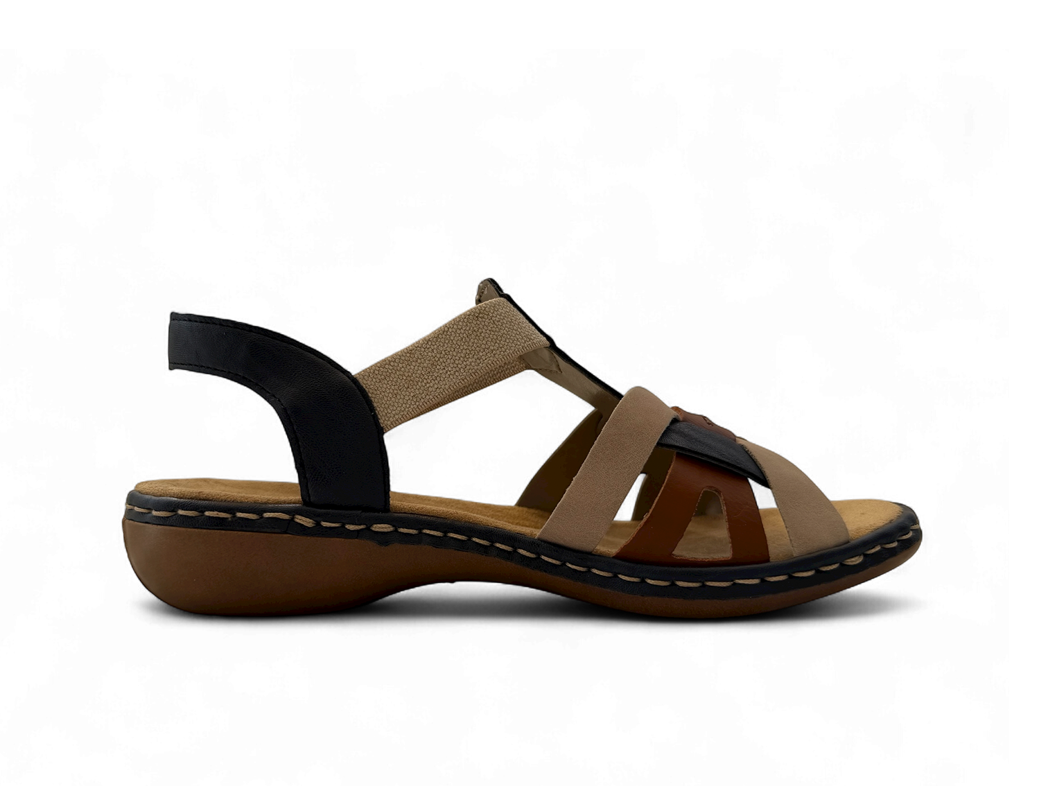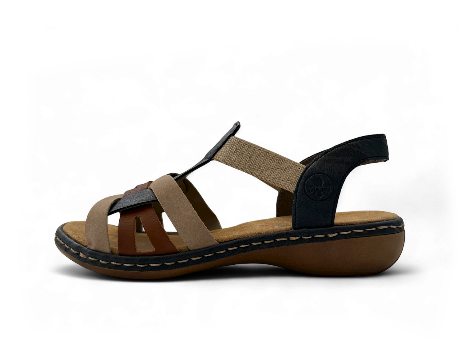 The Rieker Hampshire is a women's sandal model known for its combination of style and comfort, featuring a lightweight construction, cushioned footbed, and flexible sole for easy wear and all-day support. Key characteristics include its slip-on design with elasticated straps or stretchy detailing, a practical heel height of approximately 33mm, and the use of Rieker's Antistress technology for added flexibility, lightness, and shock absorption.