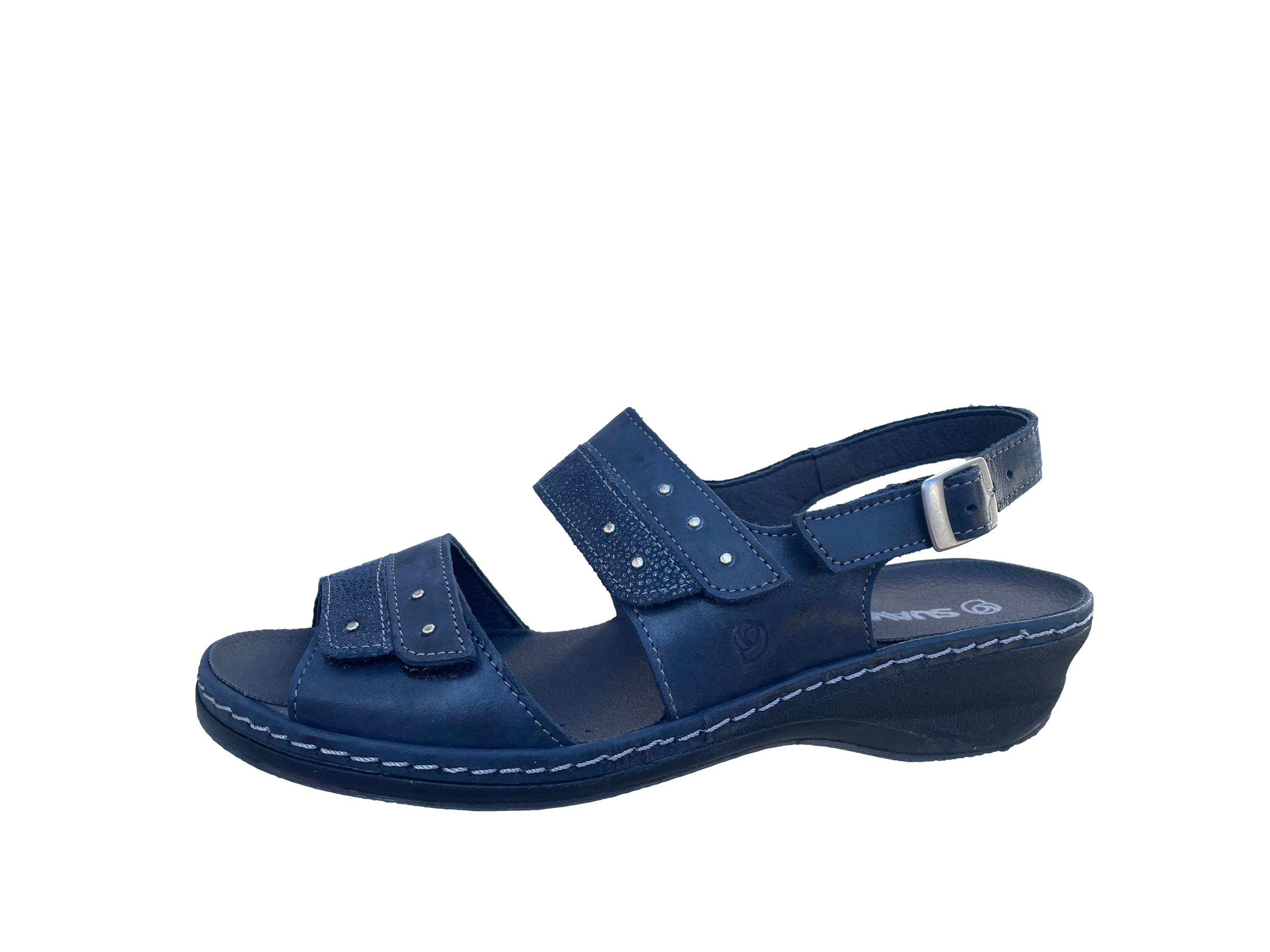 Rivoli by Suave is a very practical everyday sandal featuring a leather upper and lining, plus a removable footbed to accommodate orthotics. The twin velcro straps and an adjustable buckle slingback ensures this sandal provides comfort and the ultimate fit. Made in Europe. A favourite of Stepping Out customers - this season available in navy or cream.